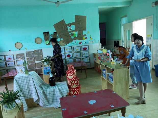 9月28日中午,中层及以上对各班进行现场的观察考核,对班级区域分布情况、班级整体环境创设、空间规划、区域材料、环境卫生等方面进行了全面、细致的检查与考核。严格采用打分制,公平、公正、公开的原则认真对待。有疑问或者有改进的策略时,考核小组会直接与班级老师讨论,直接提出建设性的意见和建议。