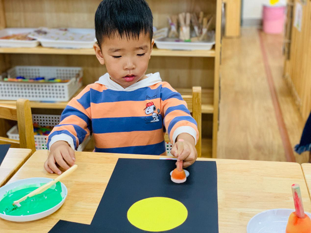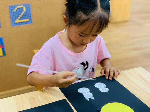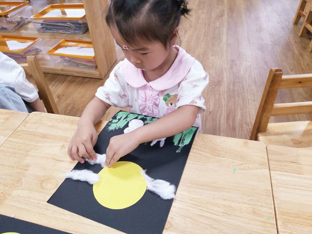 “圆圆的十五,圆圆的梦。圆圆的月儿,像笑脸。”孩子们还制作了中秋节创意画,一幅幅精美作品营造月圆之夜的美景。