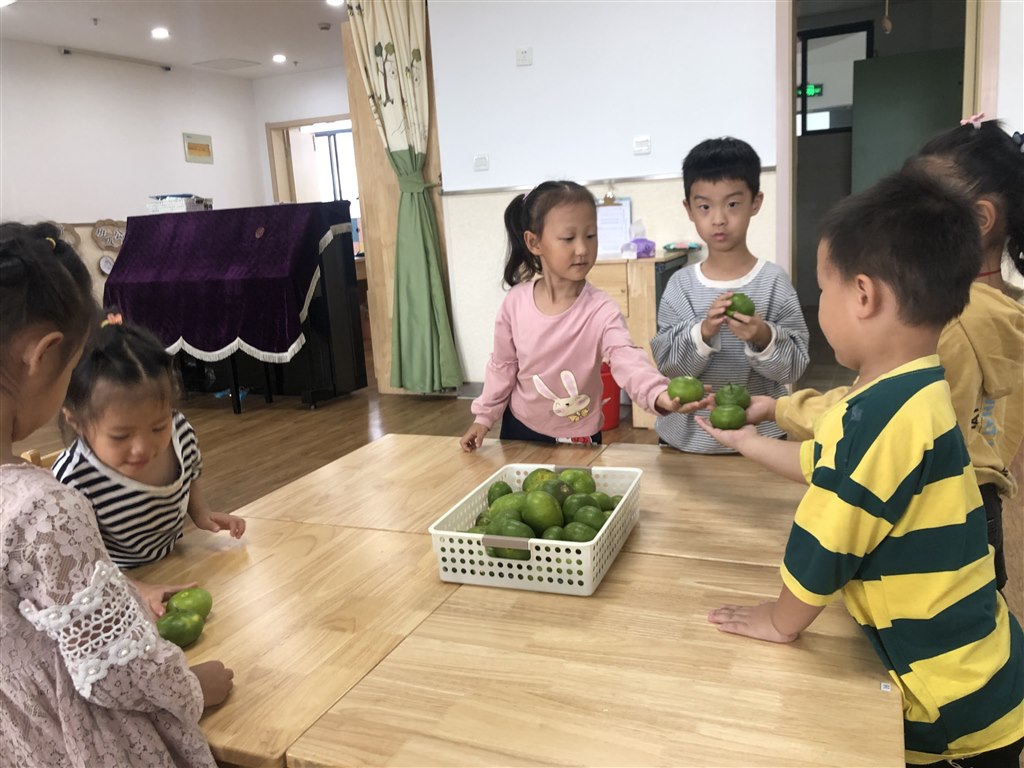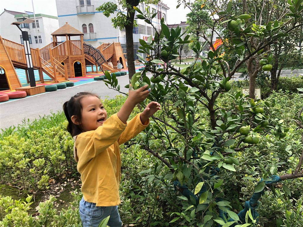 “哇,好多桔子呀”,“老师,这个桔子和我在超市看到的不一样,是绿色的,它熟了吗?”没错,树上的桔子都已经成熟了,我们幼儿园的桔子树品种不一样哦,他们是青桔,吃起来是酸酸甜甜的呢。看到桔子树上挂满了沉甸甸的果实,孩子们满心喜悦,到了桔子树旁,都迫不及待地去采摘了。摘桔子也是考验小朋友能力的哦,枝头的桔子有的矮,有的高,要大家相互合作才能顺利采摘到。瞧,我们个个是采摘的能手,不一会,就摘了满满一筐桔子。