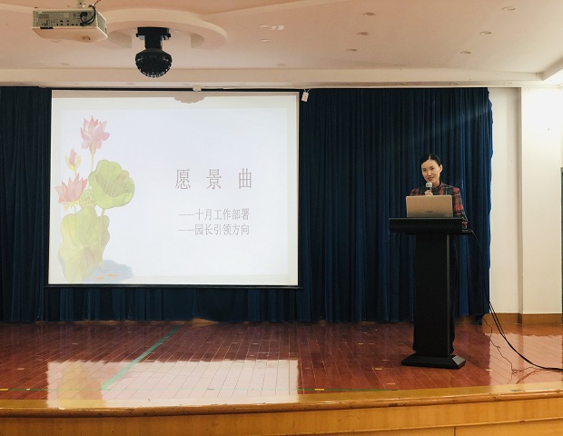 本月我园还新进了一名新教师!由团支部书记张晶老师带着新教师柴文洁老师进行入职宣誓。我们的队伍在不断的强大,我们的祖国在不断繁荣富强,感恩我们相聚在魏幼,感恩我们的祖国——中国,我们共唱红歌,喜迎国庆。夏玉文园长对后期各项工作进行了部署,让大家对10月份的重点工作有了明确的认知。