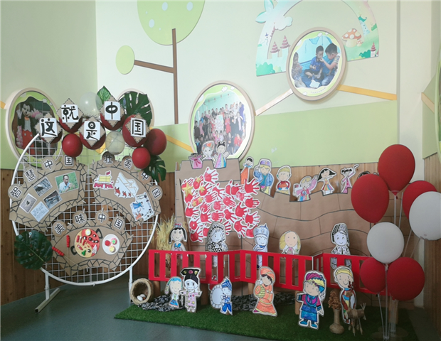 龙幼以弘扬中华传统文化为核心,乐享国庆的每个活动都立足于对中国特色文化的认知探索上。幼儿与教师一起搜集材料、探索班本课程、创意环境设计,师幼共同化身为乐享国庆活动环境创设的参与者、设计者。参与其中的每个人都能在准备活动中感受传统文化的魅力传播中华文化。承载“乐享”节日游戏场的打造,幼儿在动态参与中充分感受着节日的快乐。