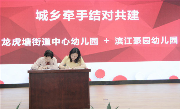 随着从省到市到区的“四有好教师”团队建设以及常州市优秀教师城乡牵手行动的启动和推进,龙幼和孟幼进行了结对,和滨江豪园进行了牵手。在本次启动仪式上,除了师徒代表签订结对协议外,龙幼高亚媛园长和孟幼汤丽霞园长签订了结对协议,龙幼吴紫阳副园长和滨江豪园赵晓丽园长签订了牵手协议。这是一个携手同行的过程,更是一个彼此成就的过程。我们有更多的机会和平台来交流辐射、共同发展,实现相互间优质教育资源的辐射推广与办学质量的迭代升级。