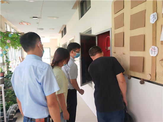 检查组一行先查看了整个校园环境;接着,走进现场,分别查看了消防设施设备的安全性及使用情况;查看了消防应急指示灯具;与门卫对话,了解了幼儿园门卫建设与管理;查看了食堂卫生状况、燃气报警、食品留样。最后,检查组查看了我园安全台账,重点关注我园膳食委员会成立及运行情况及消防维保合同,对我园的安全工作给予了肯定。