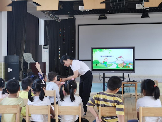 金秋送爽,我们即将迎来举国欢庆的节日——国庆节。节假日里,家长们常常会带着孩子出门游玩,为了提高幼儿的安全意识以及自我保护的能力,9月30日上午,常州市新北区新桥街道中心幼儿园邀请了常州市新北区平安防灾减灾工作室的王老师给幼儿进行了预防拐骗宣传学习。