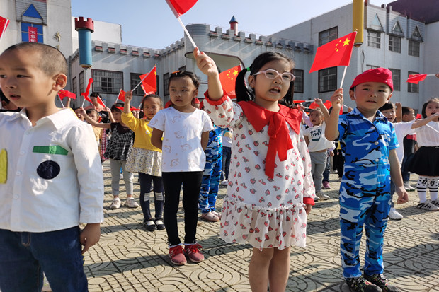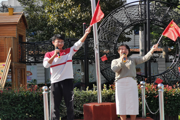 升旗仪式上,总部由大三班孩子,金牛分园是中十班孩子担任升旗手,小小升旗手们精神抖擞,步伐整齐。《义勇军进行曲》奏响时,奔幼所有孩子们手拿小国旗,和老师们齐唱国歌,明亮的眼睛注视着鲜艳的五星红旗在空中冉冉升起,升旗仪式结束后,园长妈妈带来了节日的祝福与叮咛。