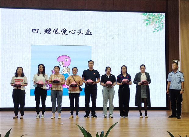 安全是一个永恒的话题,也是园家双方最为关注的话题。自佩戴安全头盔的法律规定出台以来,我园便一直致力于“一盔一带、守护安全”的理念传递。本次活动,我园特邀龙虎塘交警中队章炜指导员为全体家委会成员带来安全专题讲座《珍爱生命,幸“盔”有你》。讲座中,章指导员详细解读了佩戴头盔的法律规定,细致剖析了未戴头盔的安全隐患,视频示范了正确佩戴的动作要领,并以一个个真实案例为教材,深刻说明头盔不是摆设,拉响了家长们的安全警钟。为让家长把好幼儿出行安全关,章指导员现场赠送爱心头盔,伴幼儿温情成长,护幼儿幸福童年。