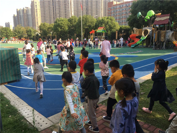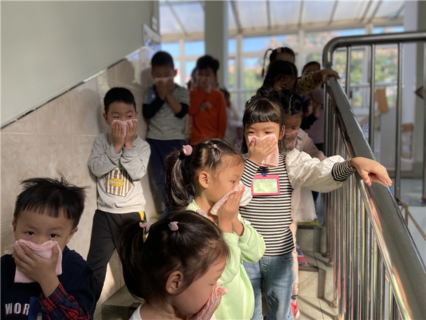 10月10日下午2点50分,河海幼儿园消防警报响起,拉开了本学期第一次消防疏散演练活动的序幕。随后,幼儿在老师们的组织下,拿起湿毛巾捂住嘴巴,弯腰低头,有序从指定路线逃生。所有班级到达指定区域后,向总负责老师报告了班级实到人数及疏散人数。
