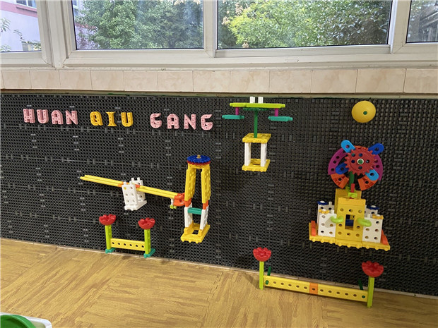 通过培训,教师们了解到可以利用积木:弧形、短轴、多向连接器、三孔椭圆、双孔连接器、弯道连接器……通过抓、握、扭转等精细动作的练习锻炼幼儿手部小肌肉的控制能力,实现孩子自主学习、探索能力、语言表达能力、团队协作能力、创新思维力、解决问题能力,从而真正改变幼儿对学习的态度。