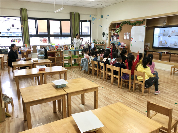 本次活动分为两项议程。首先由我园12位老师进行课堂展示,接着银河幼儿园汪田田老师的磨课团队与我园执教老师进行互动研讨。