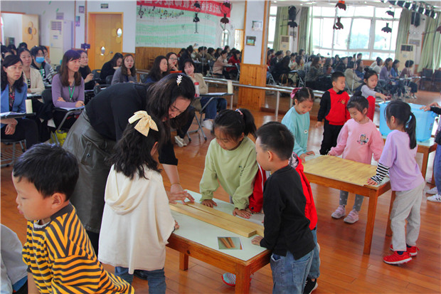 首先,大家相聚多功能厅观摩了由三井街道中心幼儿园吴娜婧老师带来的大班绘本活动《我的身体真神奇》。本次活动依托绘本,借助绘本情境,有效地提取了绘本中关于测量的元素,开展了一场精彩有趣的测量体验活动。吴娜婧老师通过生活化、游戏化等多元的组织策略,引导孩子从最初较模糊的测量走向准确的测量,活动得到了大家的一致好评与认可!