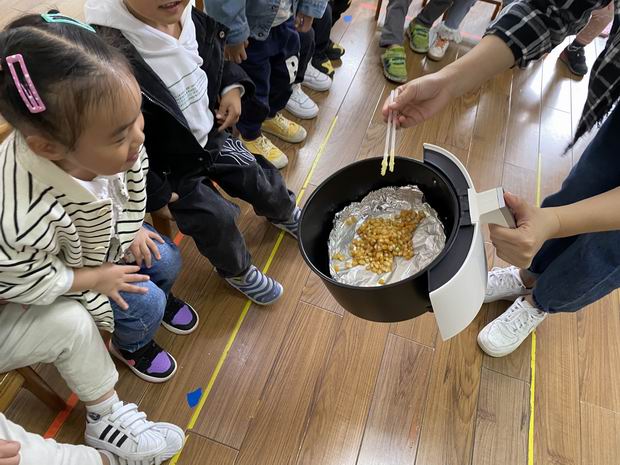 看,小1小2班的老师通过绘本《天上的爆米花》引出了好吃的爆米花。小朋友通过绘本更形象地知道了制作爆米花的过程。原来我们需要准备一个锅,放上玉米粒,倒上油,再加点糖。噼里啪啦……好吃的爆米花就出锅啦!