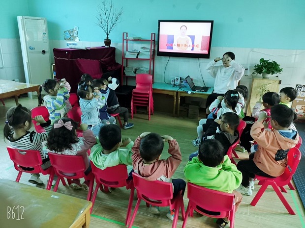 小眼睛,亮晶晶。不用脏手揉眼睛,保护我们的大眼睛。在初步了解我们的眼睛之后,老师用朗朗上口的护眼儿歌,用简易的手部动作,让孩子们在学习中明白脏手不去揉眼睛,养成良好的卫生习惯,保护我们的大眼睛。