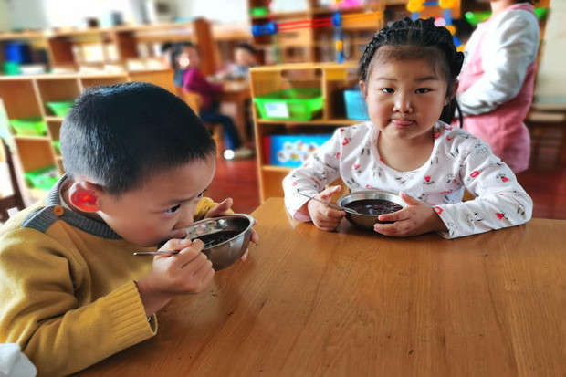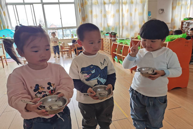 在孟河中心幼儿园里有一个特别行动——光盘行动