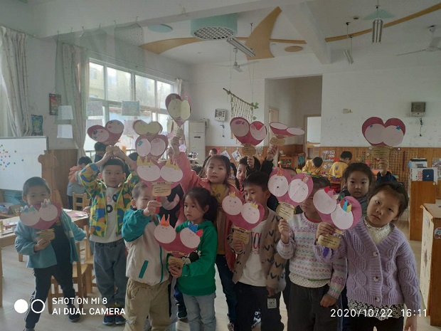 由于疫情还没有结束,不能请爷爷奶奶来幼儿园过节,于是,每个班的孩子用自己的方式来给爷爷奶奶们过节。大一班的孩子们用超轻黏土来制作菊花送给爷爷奶奶们。大二班的孩子制作了精美的贺卡,大三班的孩子们则用实际行动来表达对爷爷奶奶的尊敬之情,大四班的孩子们学了一个有关重阳节的手指游戏回家表演给爷爷奶奶看。