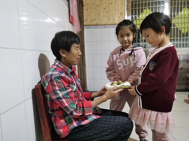 带着对爷爷奶奶们的美好祝愿,孩子们制作精美的贺卡和重阳糕。孩子们还带着亲手制作的重阳糕到社区老人家中慰问,每一块糕都是甜甜的!一份礼物、一份情!爷爷奶奶感受到了儿孙们对自己的爱,笑在脸上,甜在心里。