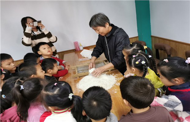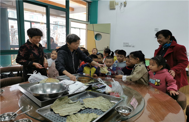 2020年10月23日上午9点,藻幼百草园教工餐厅里热闹非凡,原来藻江花园幼儿园关工委三位热心的巧手奶奶来园与孩子们一起制作重阳糕。这对孩子们来说又是新的体验。奶奶们一早将做重阳糕的食材准备好,将米粉泡发好,把荷叶和馅料都放进碗碟里。接下来的制作时光里,藻幼的整个大班级组孩子们陆续进入现场,观看重阳糕的制作过程。当孩子们看到汪奶奶完成重阳糕时,欢呼声和掌声弥漫在整个餐厅,孩子们都觉得太神奇了。大2班的浩然小朋友说:“简直比看魔术表演还神奇……”