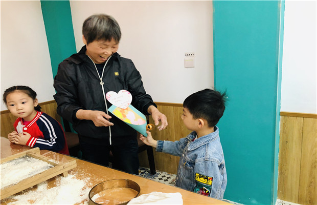 中4班的弟弟妹妹们还特意制作了节日花束作为礼物送给奶奶们。当收到孩子们亲手制作的花束时,奶奶都感动地说不出话来了,奶奶们说这是她们度过的最有意义的重阳节!