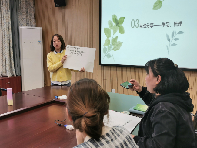 针对区域游戏中幼儿创意手工的技能发展,根据中班幼儿年龄特征,对接《指南》和《0-8岁儿童学习环境创设》,分组交流研讨,梳理中班美工区活动中教师运用到的评价策略。活动中,教师通过观察,了解幼儿创意思维和技能;适时介入,通过话语式提问和引导,帮助幼儿解决问题,鼓励幼儿继续创作;反评环境创设是否能激发幼儿的创作欲望。活动后,有目的的交流材料的选择,制作主题、新技能的辐射。刘丹老师也梳理出在美工区激励性评价的运用,激励、唤醒幼儿内心深处对于创造的兴趣与欲望。赵青主任最后对美工区评价方式进行总结和提升,除常用的作品欣赏和案例分享,还可以有问题带动式的分享,结合照片、视频的情景式分享等。通过教师的有效评价和指导,真正落实玩创课程。