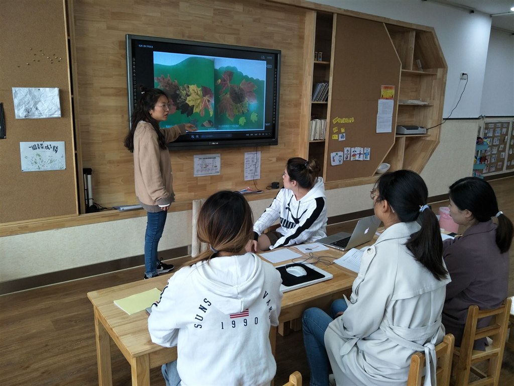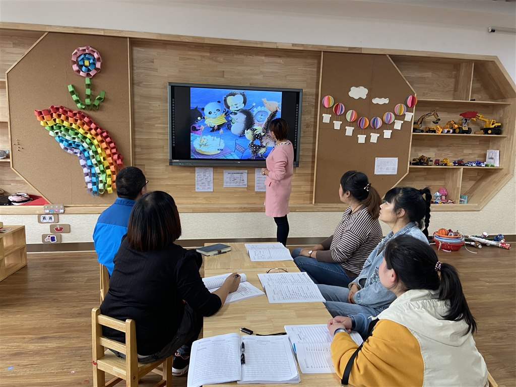活动由每个年级组的组长主持,芽芽组老师根据幼儿的年龄特点对语言活动《小猫过生日》进行了情境创设,苗苗组老师以故事《彩色牛奶》对幼儿的创造力进行了提升,果果组老师结合当下的季节开展绘本活动《叶子先生》。在研讨中从教材分析、教学目标、教学重难点、教法等方面来讨论所备课的设计思路;最后主备人通过组员的讨论修改备课内容。