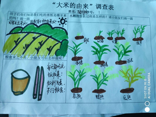 孩子们通过调查、搜寻资料、到田野里仔细观察后,了解到大米的生长过程,体会到农民伯伯的辛勤劳动,学会珍惜别人的劳动成果,培养了幼儿勤俭节约的良好品德,知道“光盘”活动的意义。