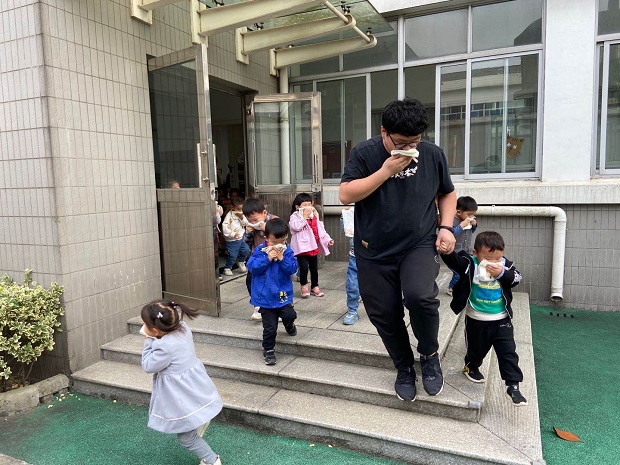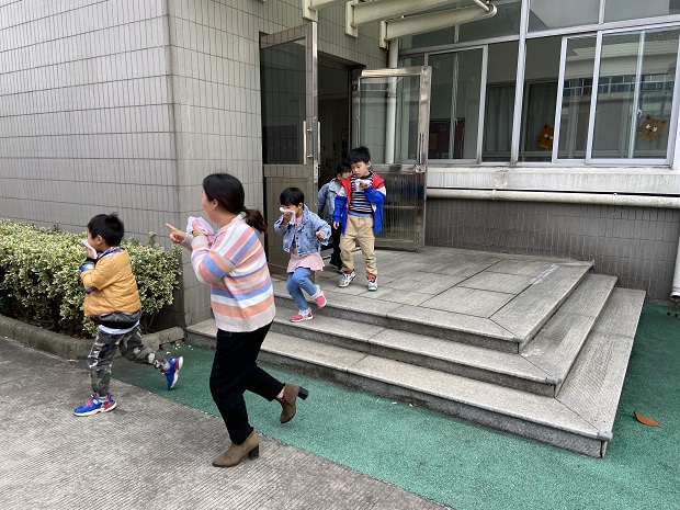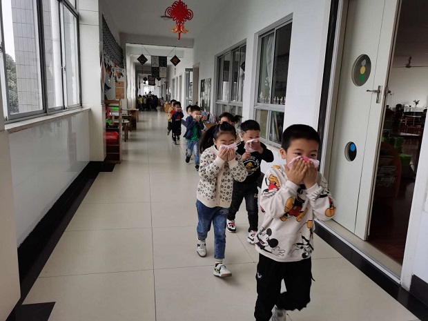今天下午我园就进行了一次消防大演练,旨在让孩子们知道:1.火灾发生时,听老师和相关人员的指挥,逆风而行。2.若火灾发生在自己所处楼层之上时,要迅速往下跑。3.逃离时最好用湿毛巾掩住口鼻,并尽量避免大声呼喊。4.在浓烟区时,要以最低姿势匍匐前进。5.身上着火时,不要跑,要躺下来回翻滚。6.教孩子记住报警电话和报警时的重要信息,如家庭地址、父母电话、火情大小等。