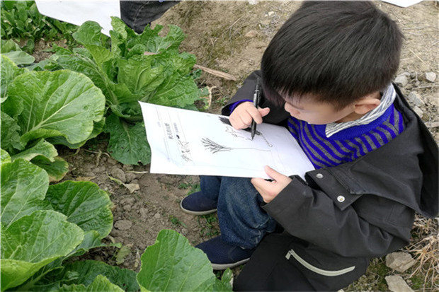活动前各班都做了充足的准备,各班老师引导孩子们围绕“你想去看秋天的什么?去田野里可以怎么去?需要准备什么?有什么需要注意的地方?”等几个问题进行了讨论。在热烈的讨论后,孩子们背上水壶,带上放大镜和记录单出发了。一路上孩子们兴奋不已地和老师、同伴分享自己的所见所闻:“地里有红红的萝卜!”“南瓜躲在地里呢。”“丝瓜!树上有2条丝瓜。”……途中,一位可爱的奶奶给孩子们分享了他们自家种的柿子,由门卫保安爷爷举着大剪刀摘取,孩子们目不转睛地盯着随时落地的柿子,拿到柿子后,孩子们说:“这是我见过的最好的柿子。”孩子们还把观察到的事物用画笔记录在画纸上,回班级继续分享。