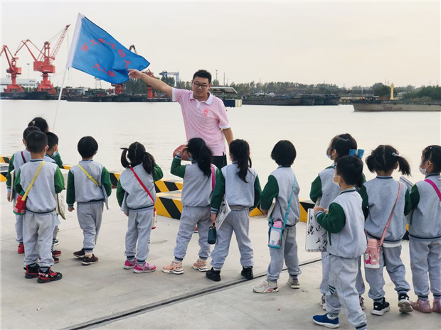 为了深入了解长江大保护行动,10月29日下午,百丈中心幼儿园大二班的孩子们在老师的带领下来到圩塘港区,热心的叔叔接待了这群小客人。