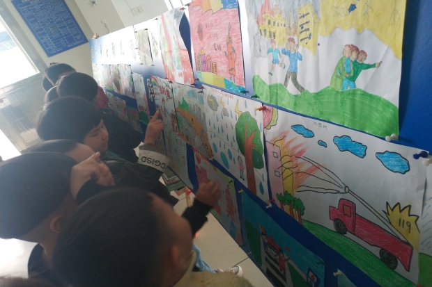 安全画展展出后,班级老师还带领幼儿进行参观,在欣赏其他幼儿的画作的同时,又了解到在我们的一日生活中安全尤其重要。
