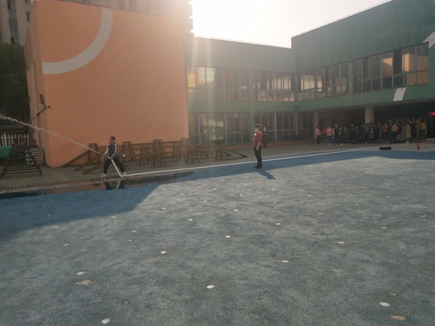 培训开始,培训人员首先演示了灭火器的正确使用方法、步骤和灭火姿势等,强调灭火前对干粉灭火器的操作步骤为“一摇、二拔、三压”,灭火时人站在火势上方,对准火的根部喷射灭火。之后,培训人员演示了消防栓内水带的使用方法:接出水阀门和水带,把接口处的凸起和凹槽相对应,顺时针方向旋转90度扣紧;接水枪头和水带,出水阀门接口的凸起对准水带接口的凹槽,顺时针方向旋转90度扣紧;一手执水枪枪头,一手把持水枪头和水带接口处水带端,双手稳固把握后,逆时针旋转,打开消火栓出水阀门,就可以喷出水了。之后,感兴趣的教师还进行了现场实操灭火,使用水带,巩固所学认知,掌握技能方法。