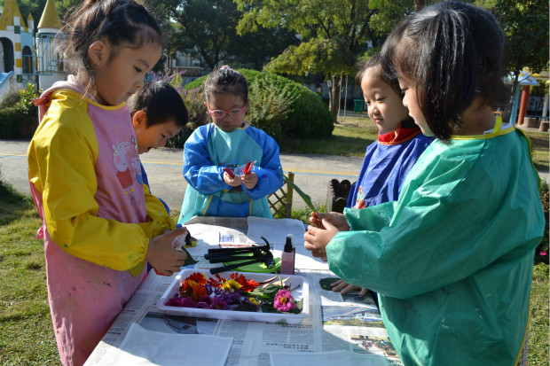 上午8点30分,各园园长、骨干教师自由参观了奔牛实验幼儿园的户外环境及幼儿活动。随后,大家观摩了奔牛实验幼儿园张蓓老师组织的大班美术活动《秋天的手帕》,张老师将幼儿带进户外艺术涂鸦区,让幼儿在阳光、微风中用喷、染、印、敲等方式留住秋天的颜色、创作秋天的手帕。幼儿在动手操作中感受艺术活动的魅力和乐趣,体会大自然的色彩之美,观摩园长和老师纷纷给予了高度评价。