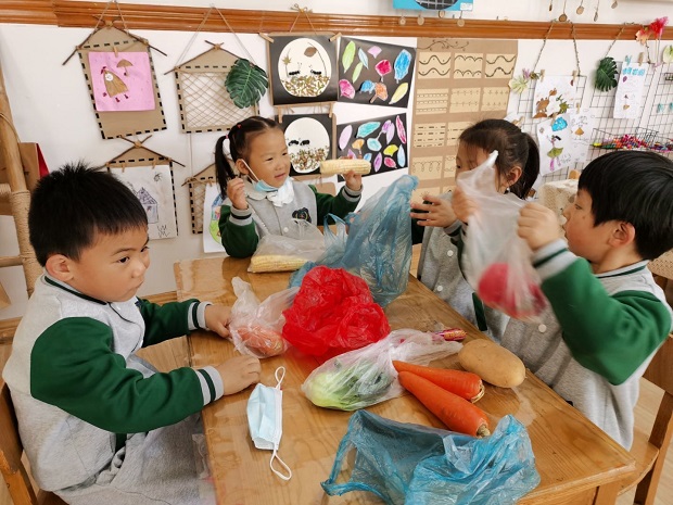 孩子们按照各自小组的买菜计划书要求尝试合作买菜,进一步感知了不同蔬菜有不同的食用部位,拓展了对植物的认识。活动中,孩子们能主动和摊主进行沟通交流,尝试在实践中学习使用钱币,从中体验到小当家买菜的快乐。