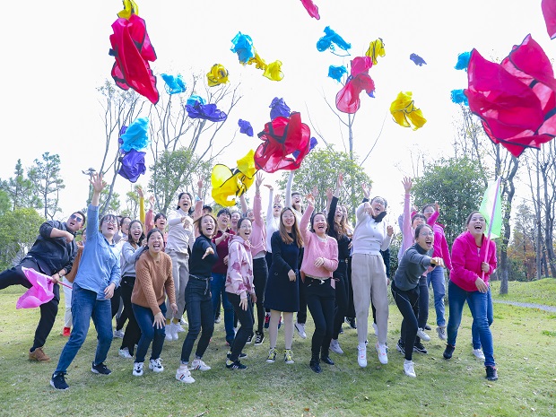 因为有缘,所以相聚;因为有爱,同舟共济。破冰活动中,大家分成四组,设计队名、口号和队旗,最终组建了一马当先对、乘风破浪队、火焰队和隔壁老王队,进行争分比赛。