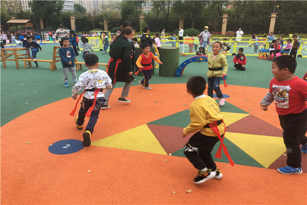 接着,大家来到户外观摩了幼儿户外自主游戏活动。小型多样化的器械,支持性运动场地,师幼默契互动让大家连连称赞,表示希望以后多开展类似活动,互学互鉴,共同成长!