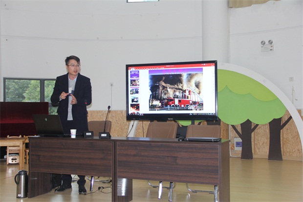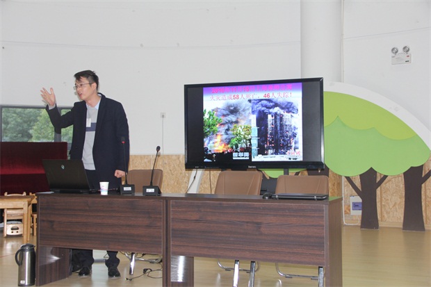 牢固树立“安全第一,预防为主,综合治理”,“责任重于泰山”的意识,以幼儿园安全工作为前提,以确保幼儿园保教工作的顺利进行为出发点,11月16日下午邀请了居家消防教员为我园全体教职员工开展了一堂生动的消防知识培训讲座。