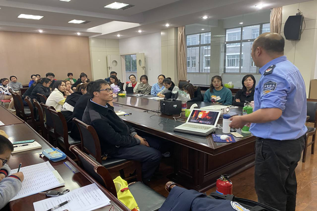 活动伊始,培训人员通过一例例活生生的案例,使每位教职工看的心惊肉跳,更重要的是给在场每位教职工的安全意识敲醒了警钟。活动中最精彩的部分要属于培训人员给每个人普及了一些生活中实用的消防知识。比如电器着火了该怎么办?千万不要着急,着火又带电,看到此场景第一反应应该是电闸。为了防止发生更大的灾难,首先必须切断电器电源或者关掉总电源的总闸。千万不能用浇水的方式灭火,这样极其容易发生电器爆炸。而是应该用沙或是泥土进行覆盖灭火,另外最好的办法就是用灭火器进行灭火。又比如若炒菜油锅起火时最好的办法是用灭火毯将火苗进行灭火。在公共场合如果遇到火灾千万不能慌张,而是要用湿毛巾捂住口鼻弯下腰扶着安全墙面匀速前进。