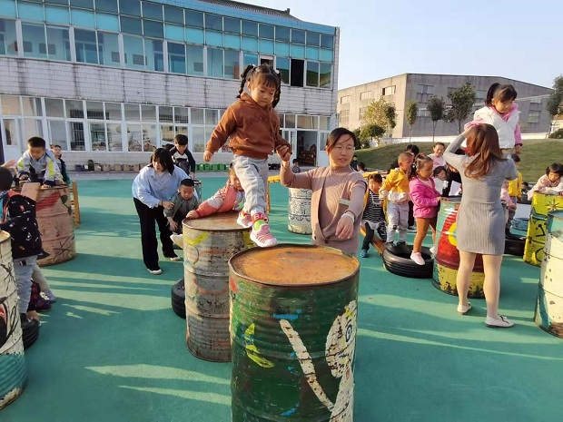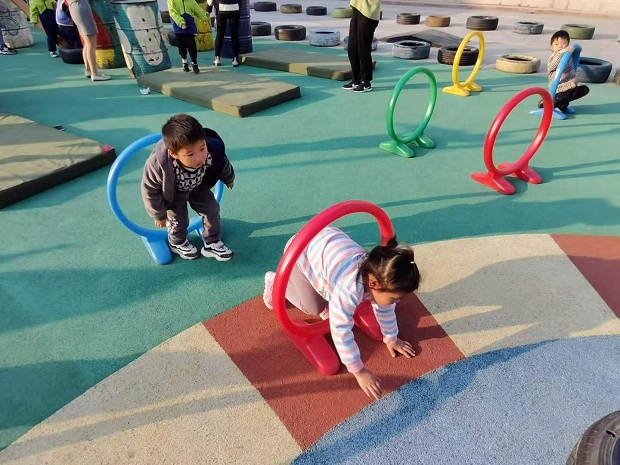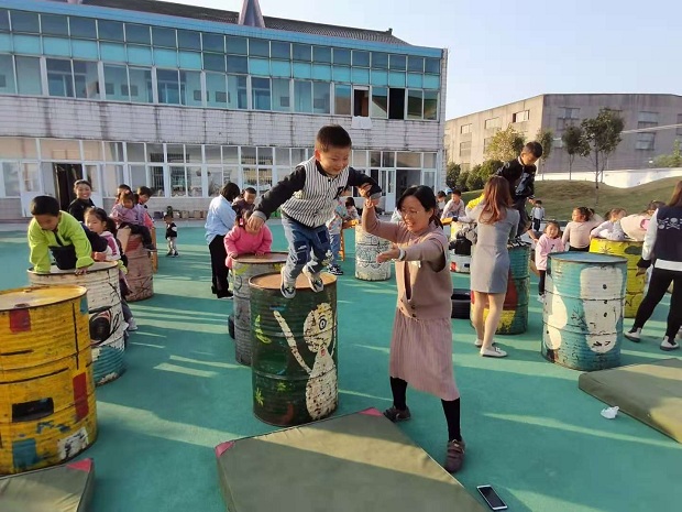 障碍大挑战有一定的难度,孩子们要过五关,斩六将:爬梯子,滑滑梯,爬油桶,跨油桶,跳高台,钻山洞,但是这些都难不倒小朋友,虽然有的环节需要老师的帮忙,但是孩子们也都勇于去挑战,非常棒!