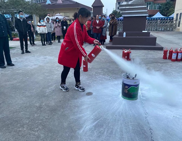 接着消防支队的工作人员带领老师们来到操场,耐心讲解灭火器的使用方法,并做示范。全体教职工听得很认真,随后,大家逐一进行灭火器实操演练,掌握干粉灭火器的使用技巧,将知识付诸实践,进一步提高消防安全意识。