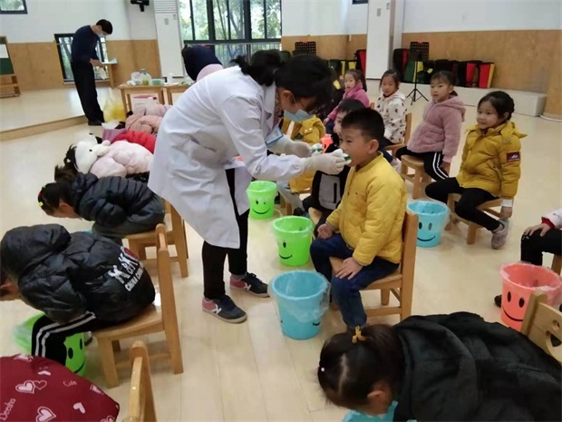 为了加强幼儿口腔卫生保健,有效预防幼儿龋齿的发生,11月25日上午,镇卫生院儿保科医护人员来园开展幼儿口腔氟化泡沫防龋护齿活动。