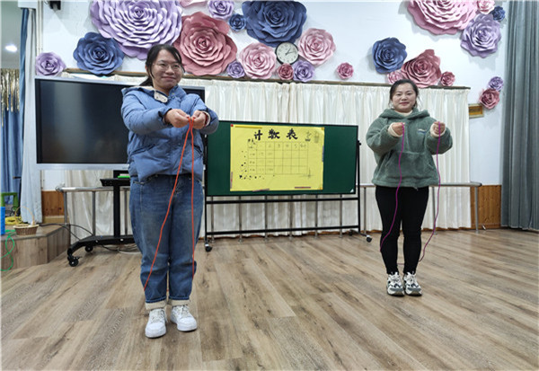 随后的游戏时光,把大家带入更欢乐的氛围。游戏“跳绳大比拼”中,大家拼尽全力,为组争光,展示了花样跳绳。游戏“坐地起身”中,老师们手挽手、背靠背,一起努力站起来获得团队胜利,让每一位老师感受着团队协作的温暖和力量。最后,顾颖园长为大家送上了感恩节的祝福。