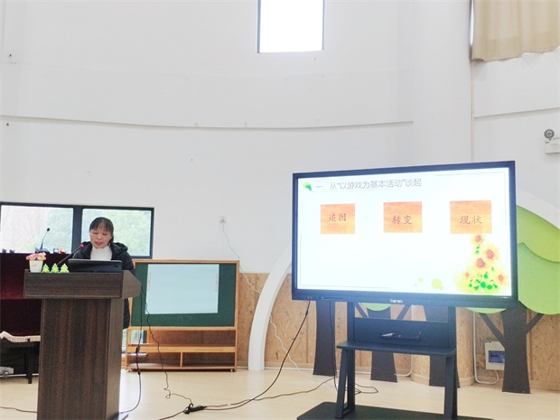 首先,游戏化集体活动组组长徐志娟园长就“游戏化集体活动 智慧化教育体现”为主题,从“研究前的两次思考”、“研究中的三个行动”、“研究后的四点经验”三个方面进行了客观全面的汇报。通过专题讲座,老师们进一步明晰了学习、思考和理解游戏化集体活动应以学习为关键、以幼儿发展为目标、以游戏精神为基点。同时通过调查把握研究方向,带着研究目的聚焦课堂,逐步推进研究进程,同时梳理出高质量集体活动的的备课要点、实施有效策略和条件、如何将经验运用于实践,以及具体活动中可用的组织要点。我们聚焦“游戏化集体活动”,一群人走在研之路上,探索有效课堂,生长教育智慧。