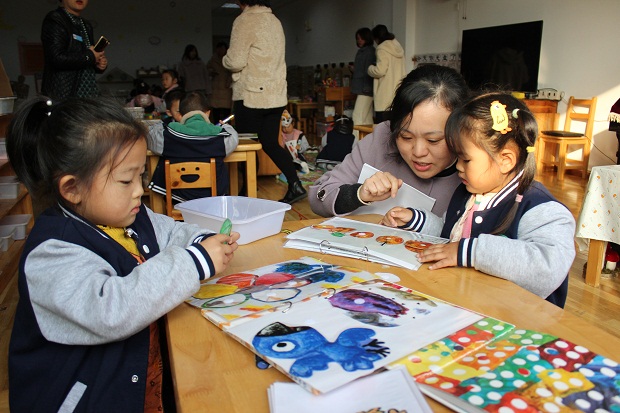 分享过后,姐妹园的老师们纷纷走进各班阅读区,近距离观摩区域环境及幼儿的游戏现场。老师们屡屡驻足,用相机定格孩子们的活动瞬间。今天的观摩现场,就是一个资源分享场,经验交流场,大家基于对幼儿游戏的观察,去共同检验调整的成效。