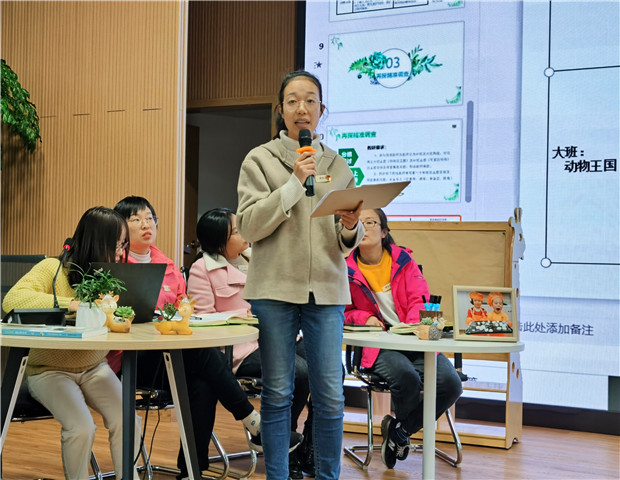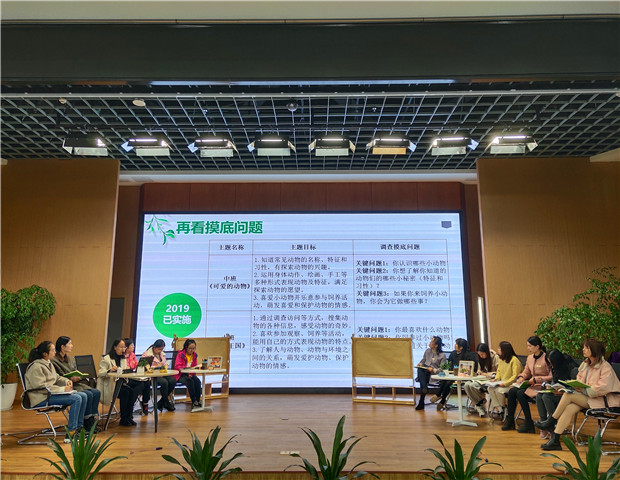 幼儿园的课程以主题活动的方式来进行,而每个主题活动开展前的幼儿经验摸底调查,也是主题活动开展不可或缺的奠基石。如何让主题推进方向和价值把握指向更加精确,帮助一线老师解决实际操作遇到的困惑和问题,11月23日中午,龙虎塘街道中心幼儿园全体教师齐聚盘龙新园区报告厅,结合当下中大班都即将开展的“动物”这一主题,进行了主题前的目标和调查摸底问题的教研与审议。