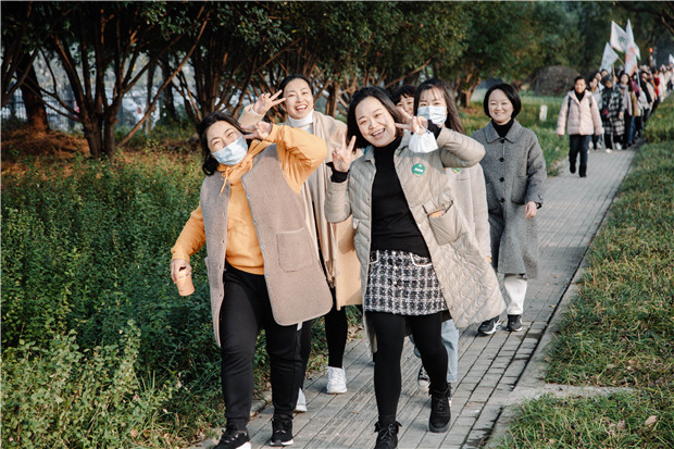 11月30日下午3点整,井幼全体教职工齐聚中心园操场,徐英园长慷慨激昂的致辞为本次活动打响了集结号,在她的热情号召与鼓舞下,全体教职工佩戴胸牌,以级组为单位,举旗出发,途径嵩山路、河海路、华山路,一路徒步至三晶工业园。虽然天气微凉,但大家的热情不减,一步一个脚印,坚持不懈地向终点进军。一路随行,一路欣赏沿途的初冬美景,一路留下此起彼伏的欢声笑语。完成全程的喜悦将身体的疲惫一扫而光,通过自己的汗水和同伴的鼓励赢得的胜利正是“在路上遇见更好的自己”和“感恩有你,一路随行”的最佳写照。