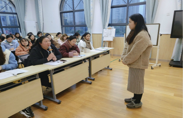 本次活动由顾滢滢老师主持,她以春幼自身文化出发,引导各位老师思考何为“春之灵”?有的老师认为春之灵即为“快乐、创意、精致、灵动“的文化体现;有的老师认为“春”是破土的胚芽,万物的生长,也寓意着春幼的生机勃勃;还有的老师则认为春之灵是教师成长的内生力。大家各抒己见,纷纷表达了自己对此的认识。顾老师也结合老师们的理解做了更深层次的诠释,即:“春之灵”是一群具有内生力、积极向上成长的教师团队。内生力来源于大家都有这样的“四有”共识:心中有儿童、眼中有世界、行中有格局,育中有情怀。