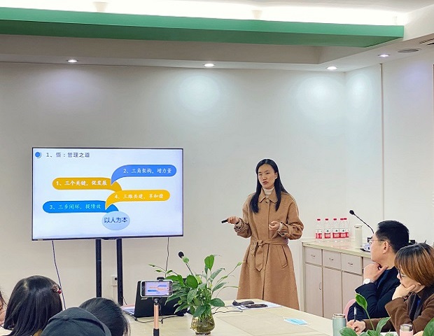 首先眭园长带领大家观看了我园户外、区域游戏视频。陈华芳园长以“亲近自然,向阳生长”为主题向教师们介绍园所特色,针对园本文化内涵发展、精细管理、教育科研、园本培训、环境创设、区域特色等方面进行详细介绍。