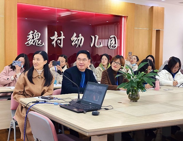 “一花独放不是春,百花齐放春满园。”为了收纳更多优质教育资源,加深园所之间的相互了解,为进一步诠释“环境育人”的理念,落实《纲要》及《指南》精神,促进幼儿富有个性的发展,全面提高教师专业能力和综合素养,魏村中心幼儿园进行了开放活动。在12月10日下午,盐城射阳教育局组织了35位学前教育骨干教师培训战学员前往魏村中心幼儿园考察学习,学习主题为:幼儿园课程游戏化建设与专业提升。