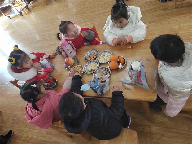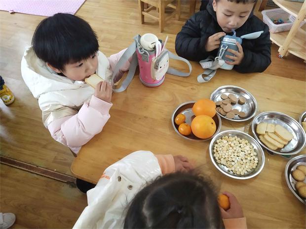 巩固了对图形特征的认识。在自己动手剥桔子的过程中,幼儿看到圆滚滚的橘子,兴奋地说:“你看像个圆球,像个小灯笼。”拿起一瓣尝一尝“我在吃月亮”“我在吃小船”感受着圆形变成半圆形的惊喜。在与同伴分享品尝图形食品的过程中,小朋友用小嘴巴我们的生活离不开各种各样的图形,有圆形、正方形、三角形等等,为了让幼儿真正走进图形的世界,12月11日,西夏墅中心幼儿园小班结合主题《图形宝宝》开展了“图形食品品尝会”活动。