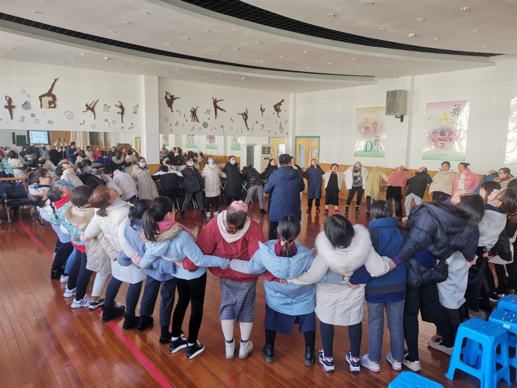 闫老师带领全体教师围成一个大圆,玩了名为“我们是优秀的团队”的热身游戏,听着闫老师讲述的游戏规则,热身游戏准备完毕,向左倒,向右倒,在全体老师的齐心协力下,游戏很成功,没有一处脱节。