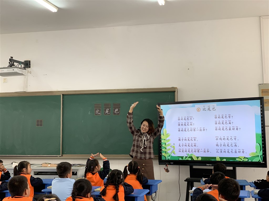 今天的两节课分别由吕佳音老师和刘媛媛老师执教。吕老师执教《比尾巴》一文,亲切的语言、灵活的课堂把控能力把知识的教学、能力的提高、常规的养成等都化作一股清泉潺潺地流入孩子们的心田。在充分预设的基础上,吕老师能及时捕捉课堂资源、放大资源,为学提供范例、为教形成支架。刘老师的课堂充满着童真童趣,她立足年段特点,抓住诗歌的文本特征,结合教学重难点层层推进。通过关联经验来巧妙识字、通过积极体验来促进表达,一系列巧妙方法的运用让教学点在她的引领下层层突破,实现语言的内化,促使素养的提升。课后,左雅老师和孙洁老师进行了评课,认为两堂课中,执教老师都不约而同地抓住低段学生的年龄特点,依据文本创设情境,并贯彻始终,让孩子愿学、乐学、会学。