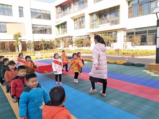 今天是2020年12月21日,孝幼全体师幼不畏寒冷,相聚在美丽的中心广场,举行每周一的升旗仪式。8点45分,升旗仪式正式开始,伴着激昂有力的出旗乐曲,果果班的升旗手踏着坚定而有力的步伐,护送着国旗走向升旗台。当雄壮有力的《义勇军进行曲》响彻整个幼儿园,孩子们集体行注目礼,看着鲜艳的五星红旗冉冉升起,点燃了孩子们强烈的爱国热情。